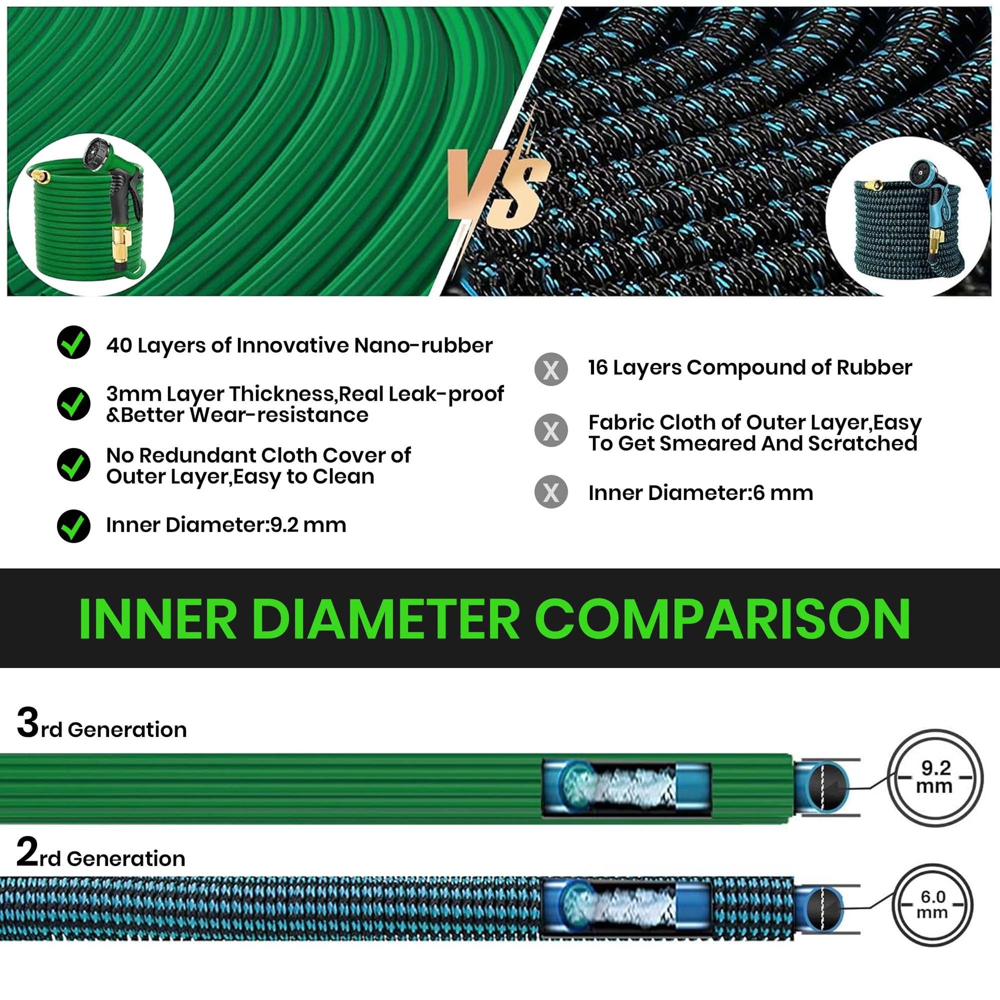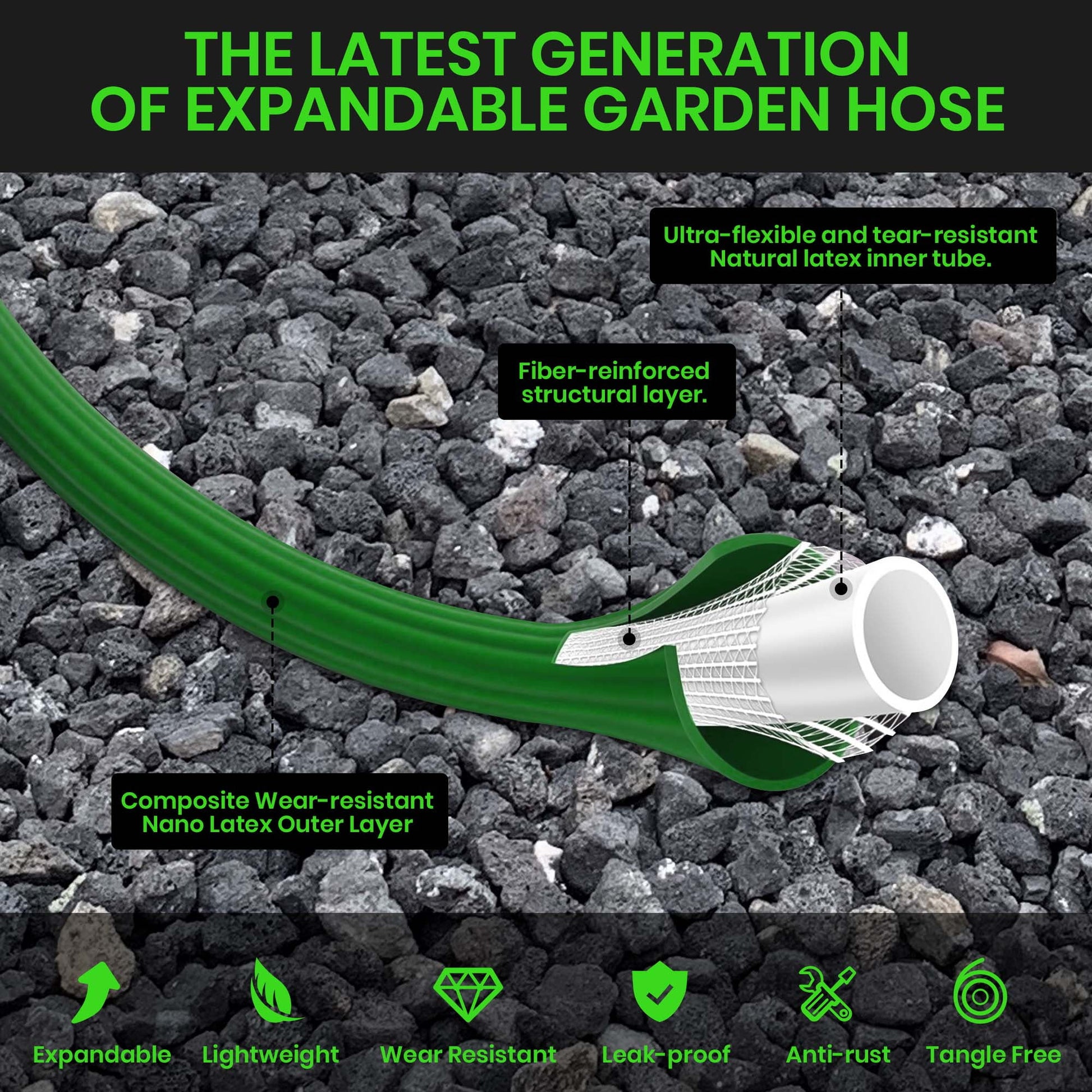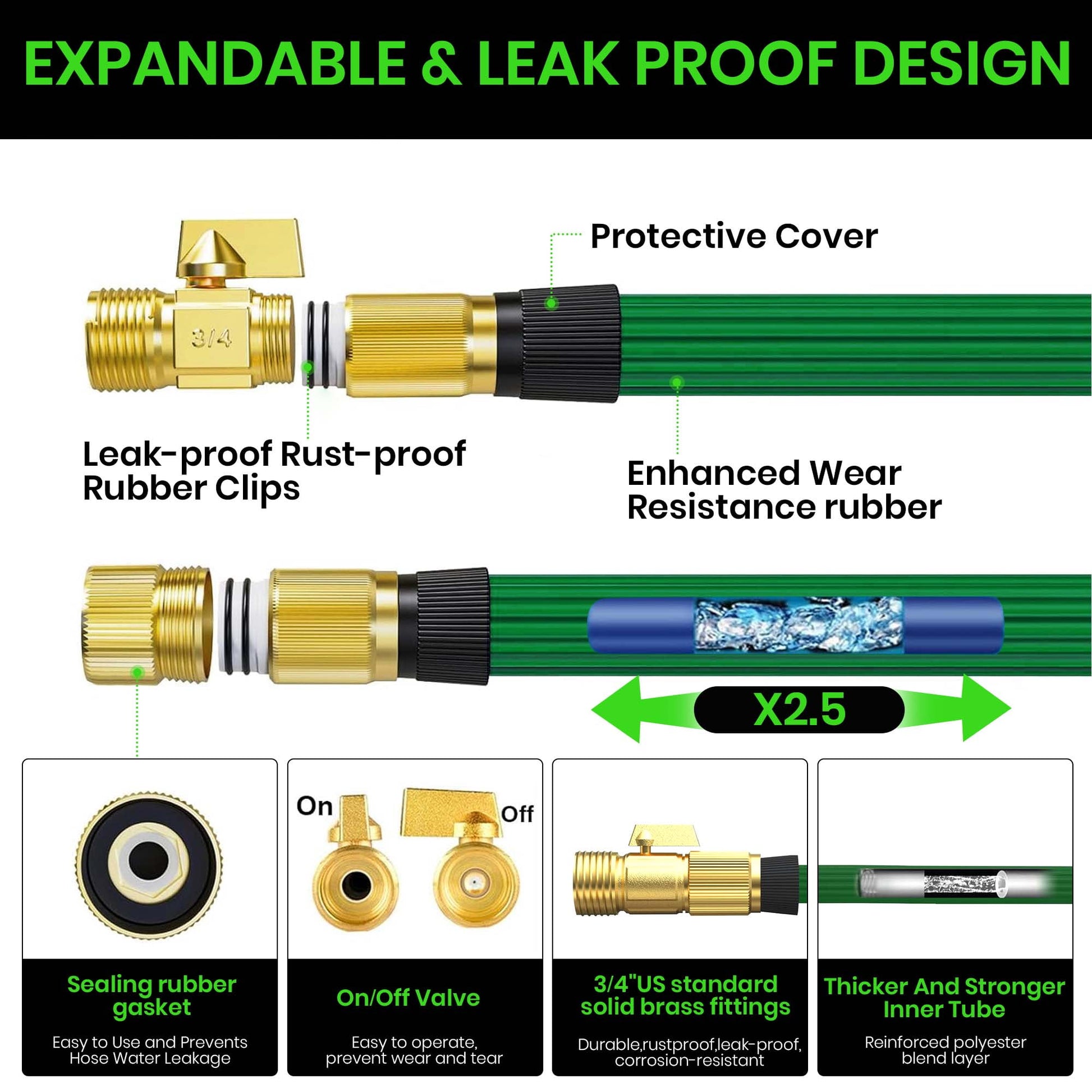 Garden Hose, 100ft Expandable Water Hose with Spray Nozzle, No-Kink, Leak-Proof, Heavy Duty, 190Psi