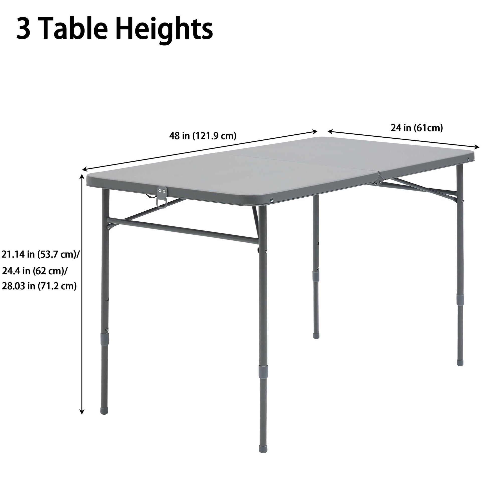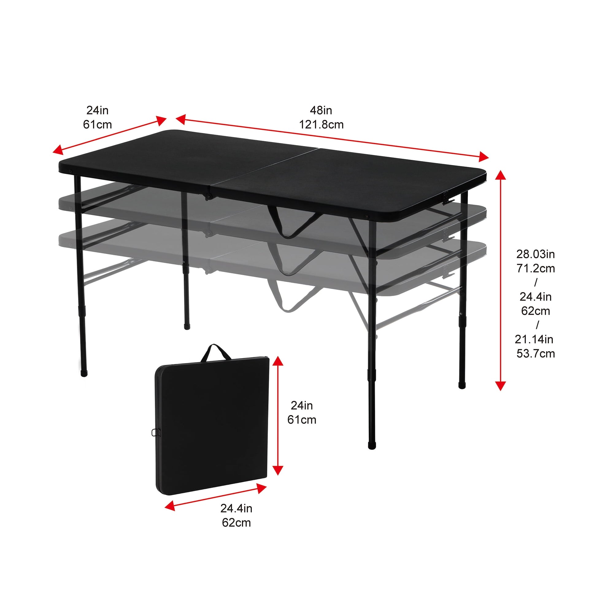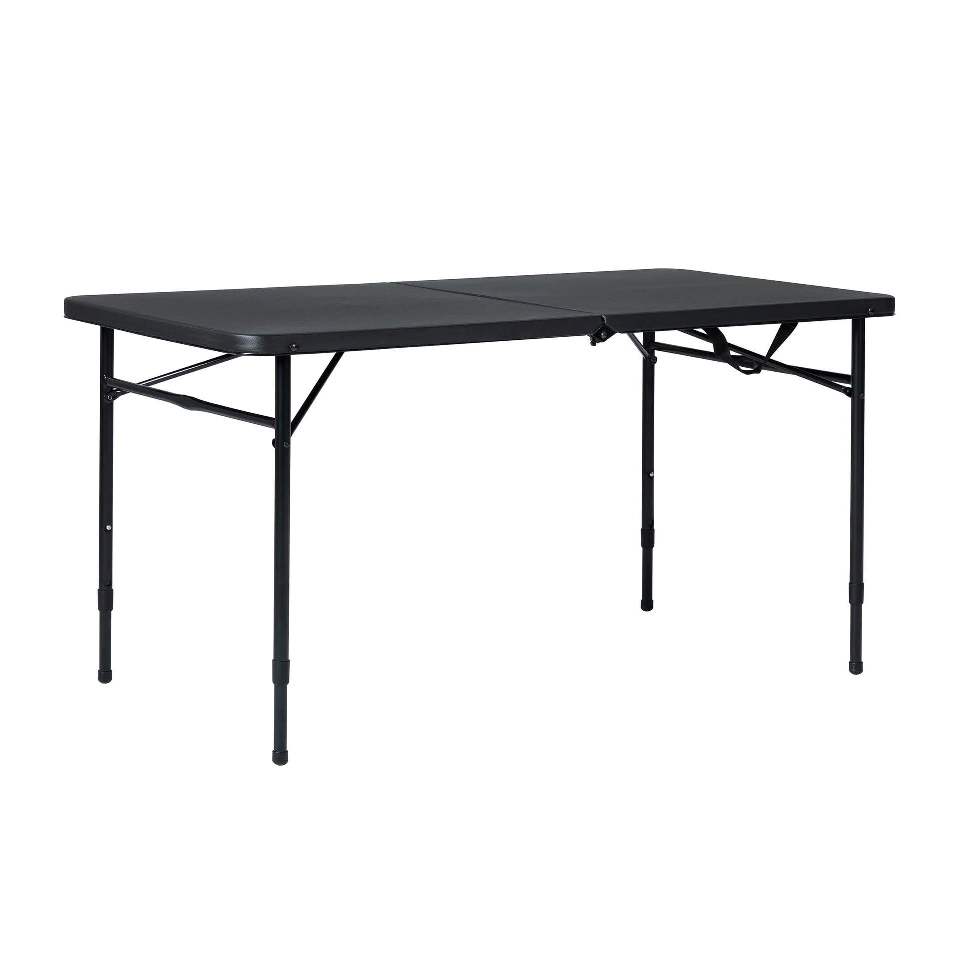 4 Foot Fold-in-Half Adjustable Folding Table, Rich Black