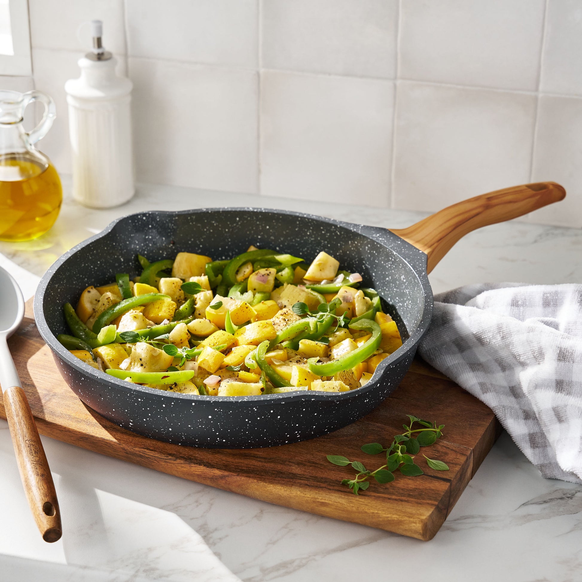 Pioneer Woman Prairie Signature Cast Aluminum 12" Fry Pan, Charcoal Speckle