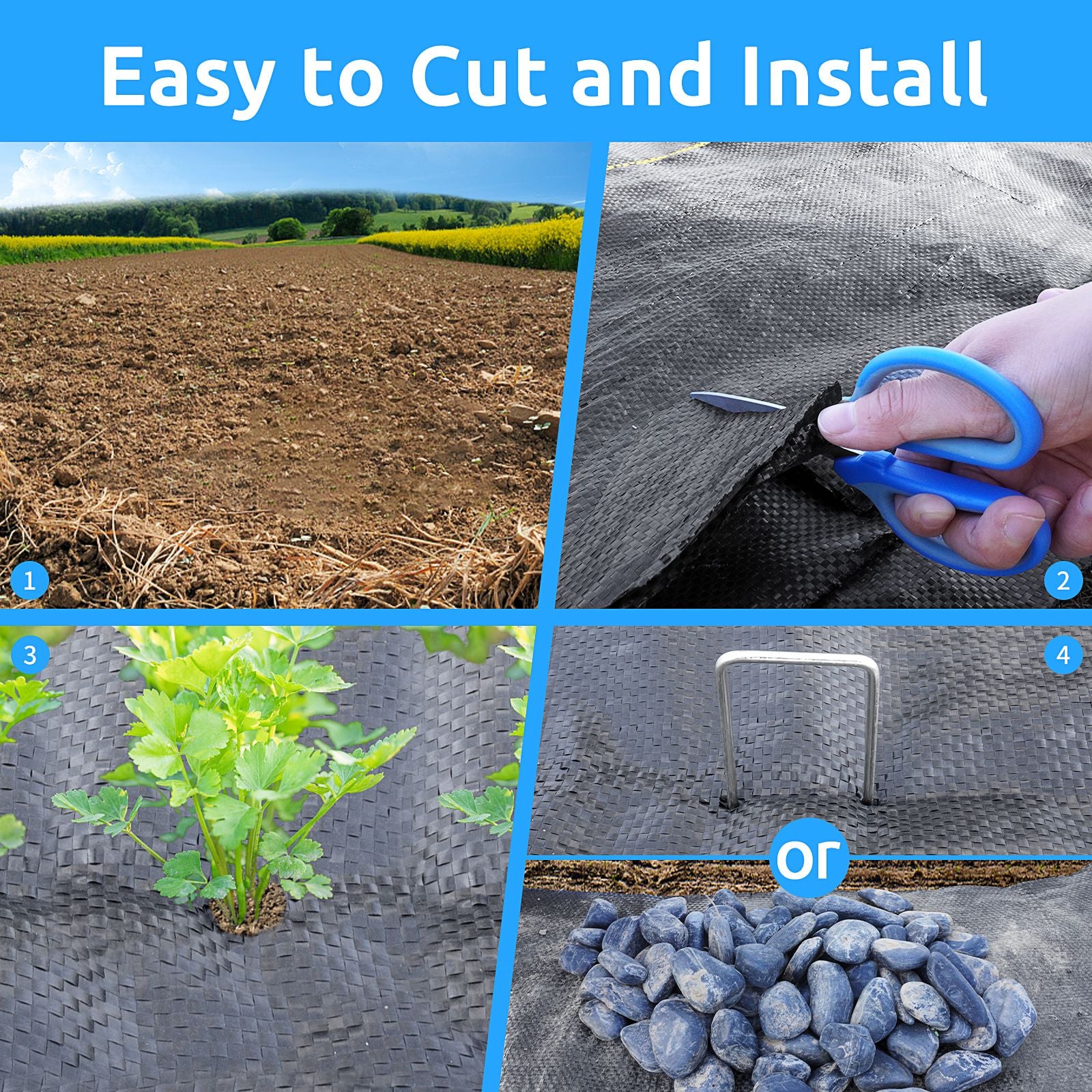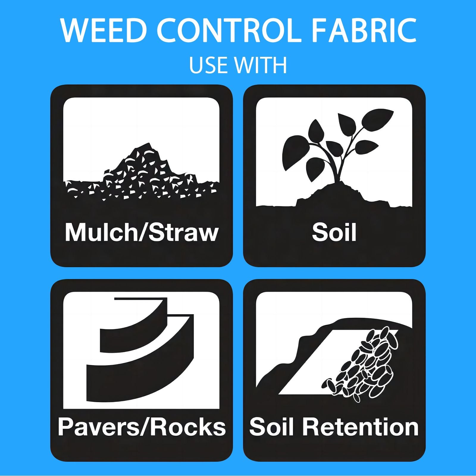 Landscape Fabric with U-Shaped Securing Pegs, Heavy-Duty Block Gardening Mat Weed Control